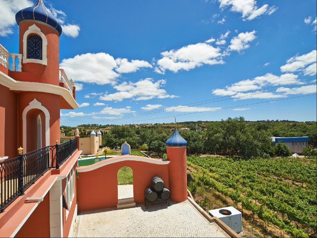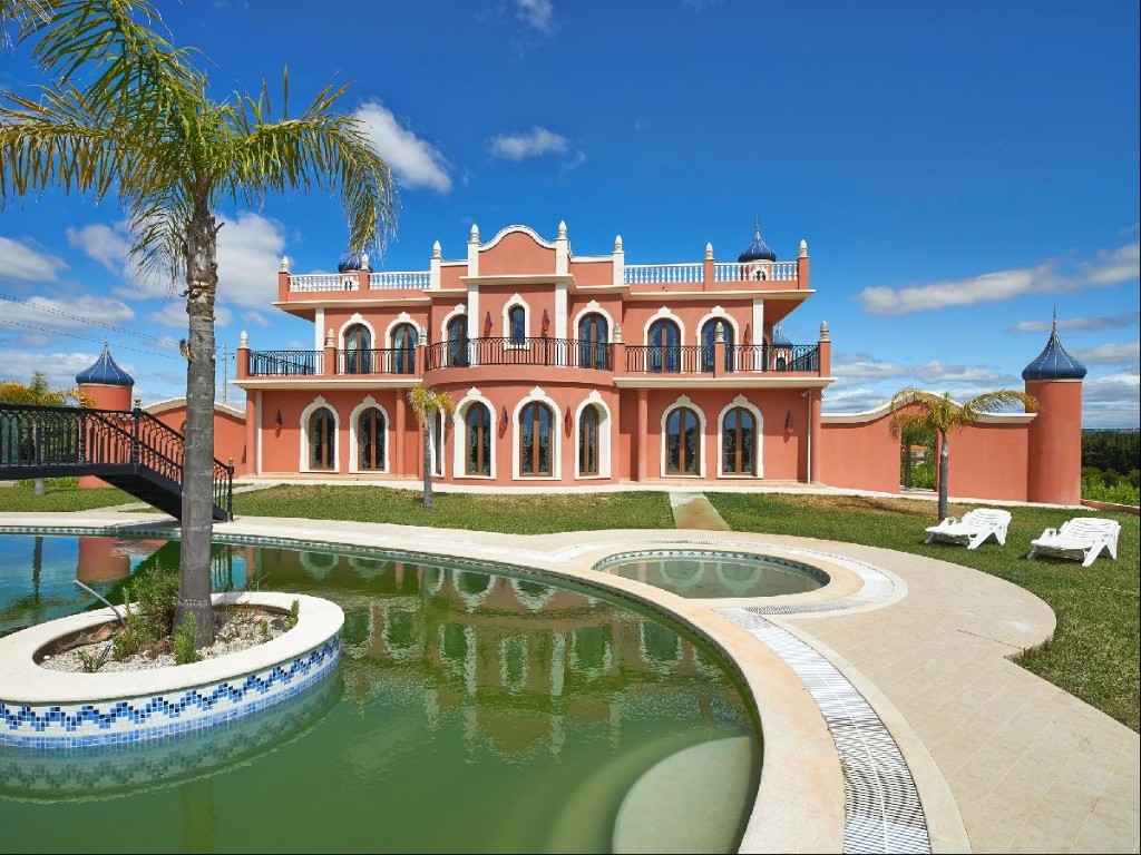 Muito próximo da praia da Fonte Santa, dos luxuosos empreendimentos da Quinta do Lago e Vale do Lobo, rodeada de zonas verdes e ampla área de cultivo com diversas árvores de furto, nasce esta majestosa herdade de inspiração oriental que se afirma como peça única no mercado de luxo do Algarve. O edifício principal destaca-se pelos detalhes arquitetónicos onde o mármore embeleza a ampla zona de estar e jantar, cozinha devidamente equipada, cinco suites e casas de banho requintadas. Incontornáveis e luxuosos detalhes, como as abobadas trabalhadas os vitrais luminosos sobre distintas colunas douradas, o mármore, heliporto, sauna, piscina ladeada de palmeiras tropicais, convidam-no a um estilo de vida próprio, distinto e irreverente.